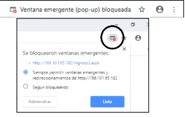 Si no aparece el menu de ingreso por favor active el permitir ventanas emergentes desde este sitio web en su navegador y vuelva a ingresar.